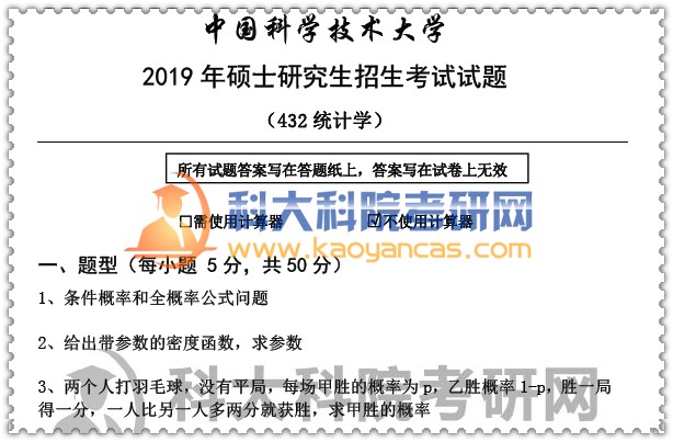 1、中科大《432统计学》历年考研真题及参考答案(考研必备,独家更新2019年真题+2017-2018年原版试题)