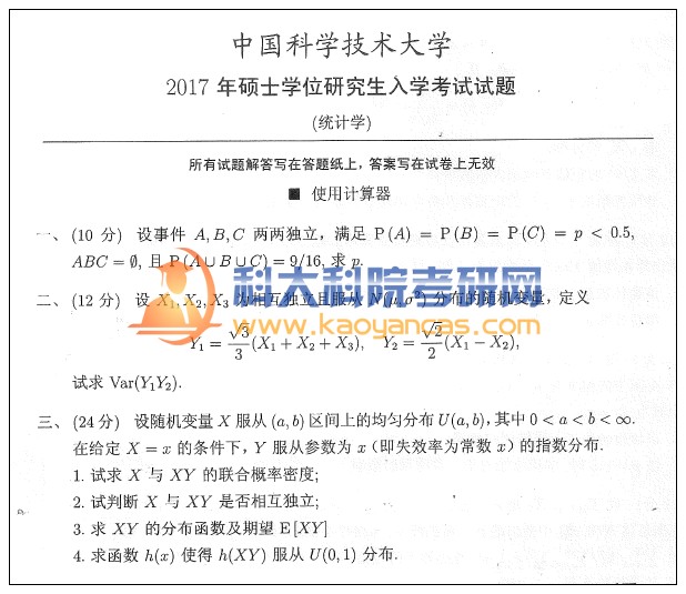 2、中科大《概率论与数理统计》历年考研真题及答案(推荐)
