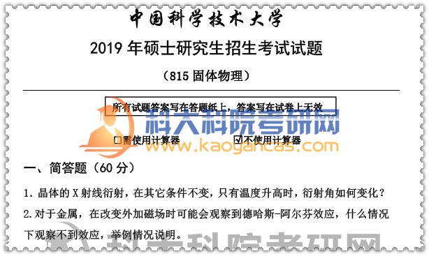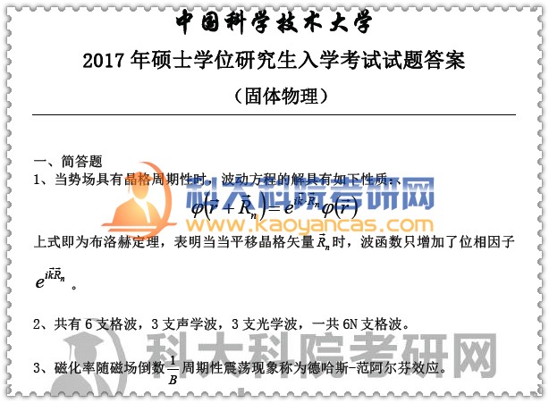 2、中科大《固体物理》历年考研真题(独家更新2019年考研真题)