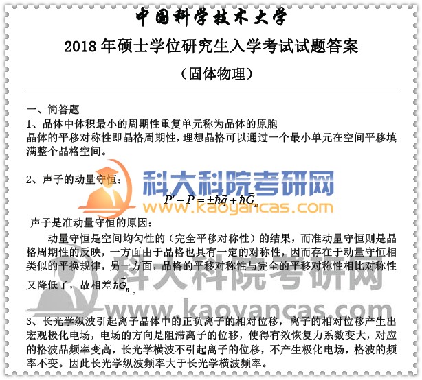 1、中科大 固体物理 考研内部信息汇总(视频课程)