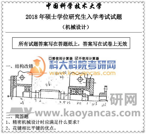 2018年中科大《机械设计》考研真题