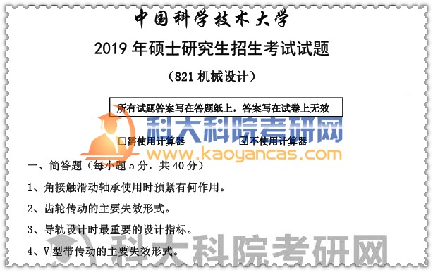2019年中科大《机械设计》考研真题