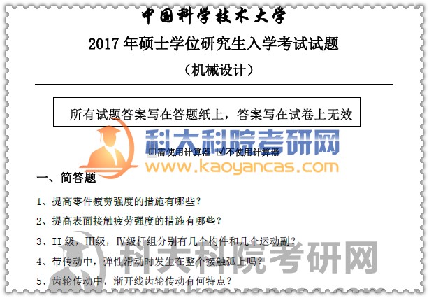 2017年中科大《机械设计》考研真题(含答案解析)