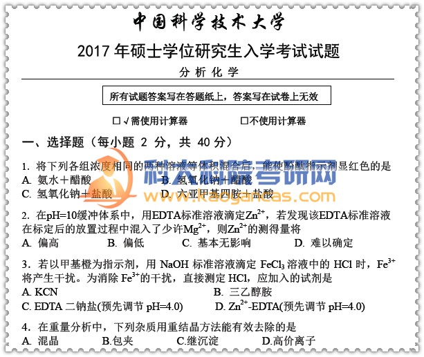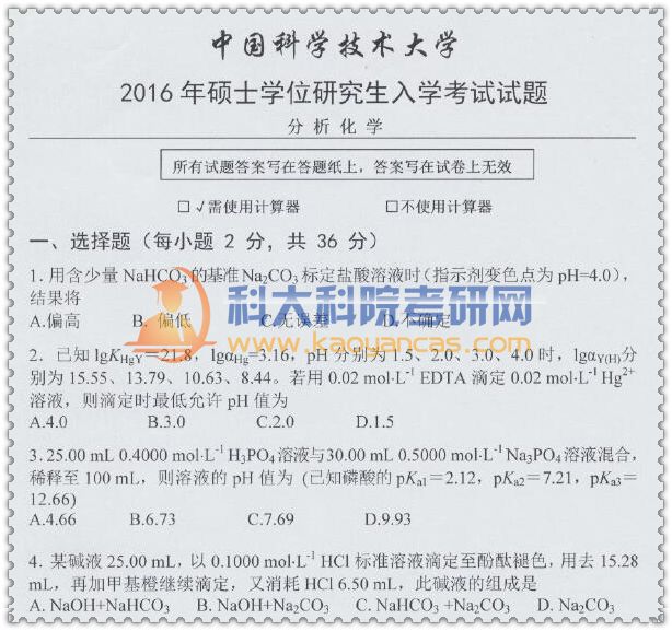 1、中科大 分析化学 考研真题汇编 (独家更新2017年回忆版真题+2016年官方真题答案!)
