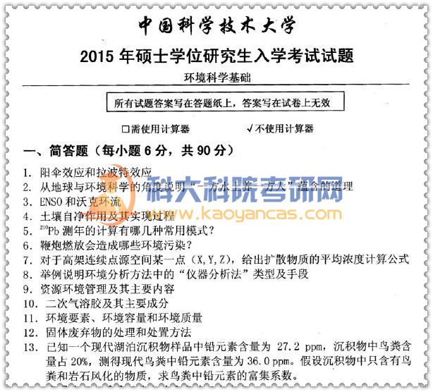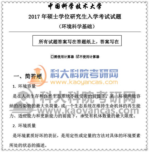 1、中科大《环境科学基础》历年考研真题(独家更新2019年考研真题)