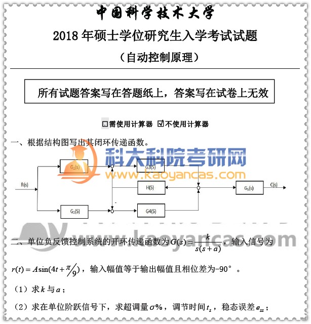 1、中科大《自动控制原理》历年真题及答案(独家提供2018年真题!全国独一份)