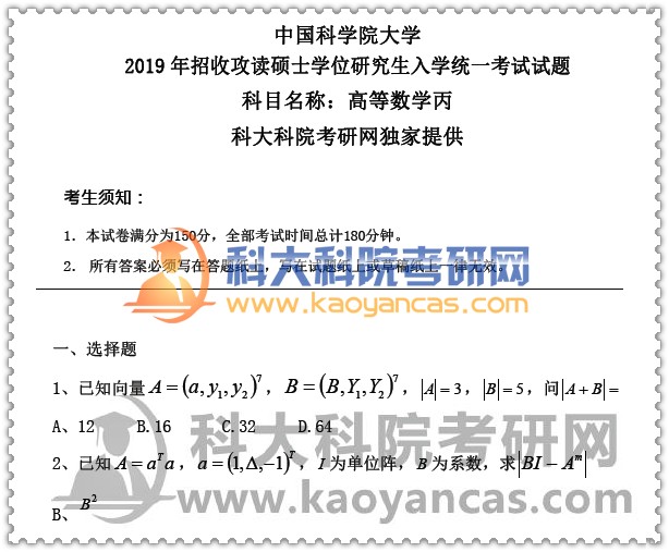 本笔记是由高分学长提供,中科院《高等数学 丙》大纲中线性代数部分的所有考察内容,并结合一些例题讲解了如何运用知识点去解析考题。