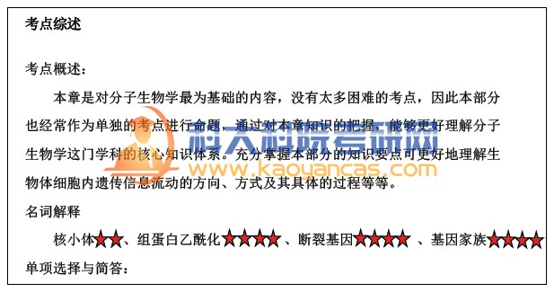 “备考篇”主要汇总了考中科院生物专业必备的一些信息,主要包括:历年复试分数线,本专业报考难度及竞争情况分析,根据历年真题的考察范围而归纳的考试大纲,学长对于政治、英语等公共课及本专业课的复习策略等。掌握初试必备的信息,才可安心复习。