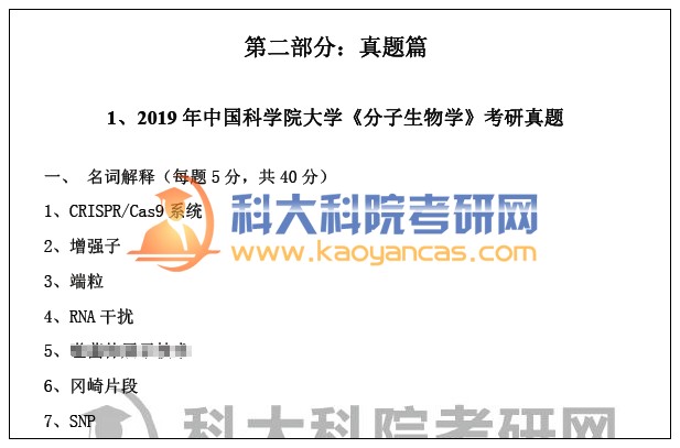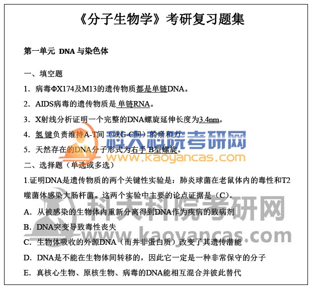 三、中科院《610分子生物学》历年考研真题及答案解析【独家更新2019年考研真题】