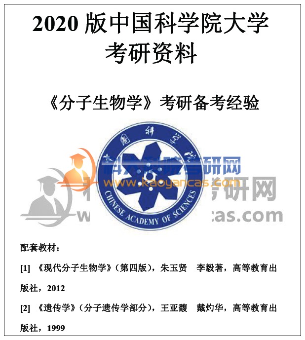 2020版中国科学院大学《610分子生物学》考研复习全书是中科院高分已录取的学长收集整理的,全国独家真实、可靠,是真正针对中科院考研的资料。我们将所有的资料全部WORD化,高清打印。真题编写了详细的答案解析,即使是小题也明确指出了考察的知识点,对于做题帮助更大。同时,我们在分析历年考研真题的基础上,针对中科院考研,编写了详细的复习备考讲义,明确列出考研的重点、难点和考点,可在短时间内快速把握重点,提升成绩。初试大家只需要准备我们的资料+教材+配套辅导书就足够了,不用再四处寻找其它资料。