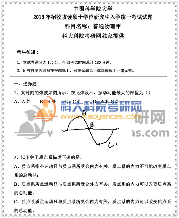 注:中科院研究生院统一命题的考研试卷分为AB卷,其中A卷为正式选用的试卷,B卷为备用卷。