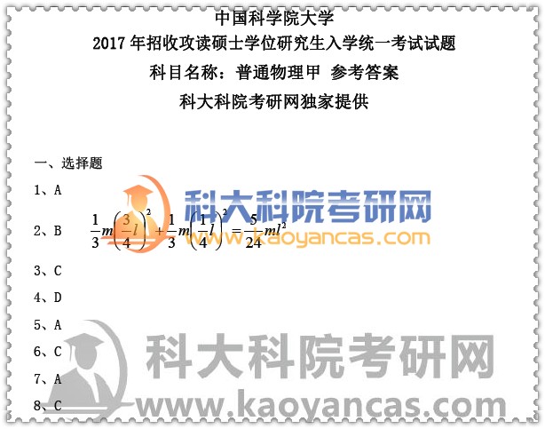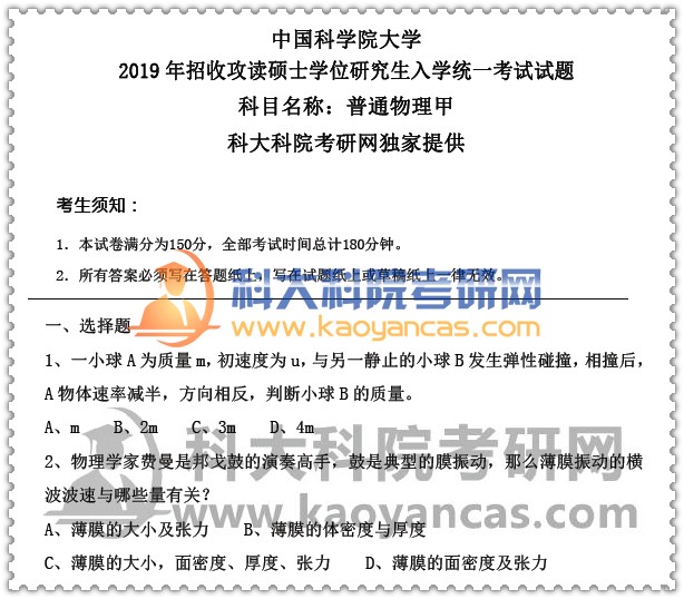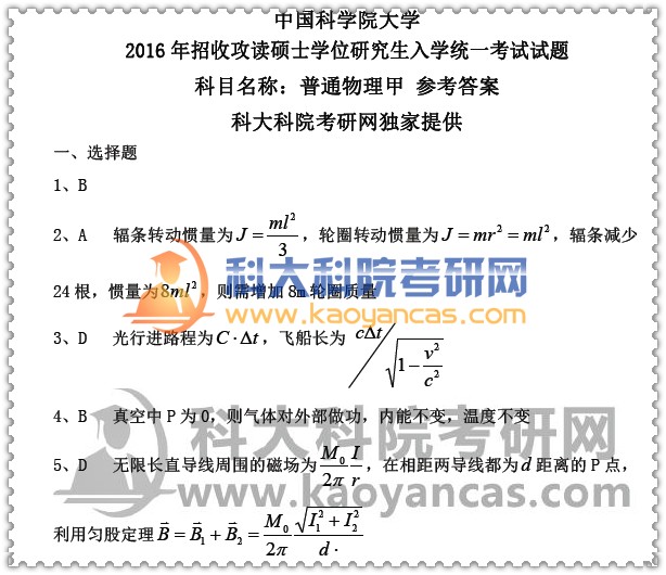 2、中科院《普通物理 甲》历年考研真题(独家更新2019年真题+16-17年真题答案)