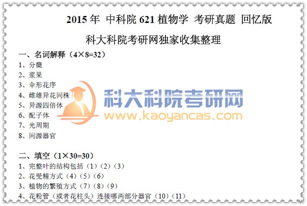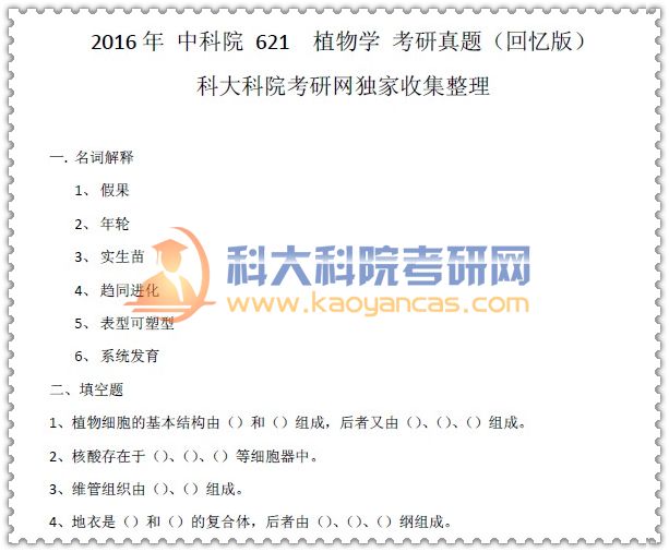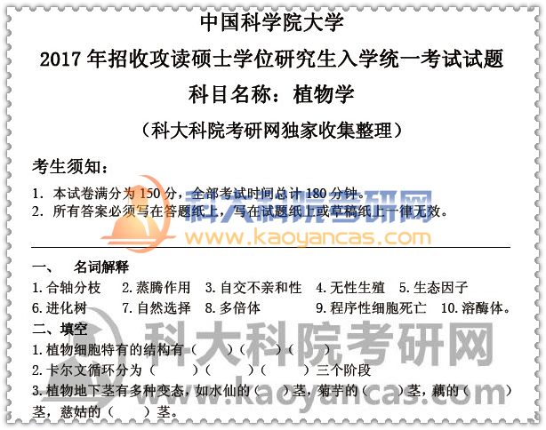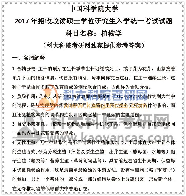 一、中科院《植物学》历年真题及答案解析(独家更新2019年考研真题)