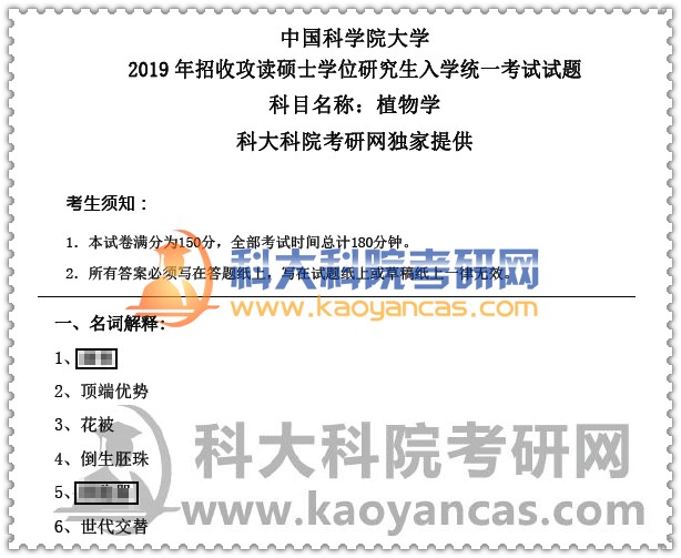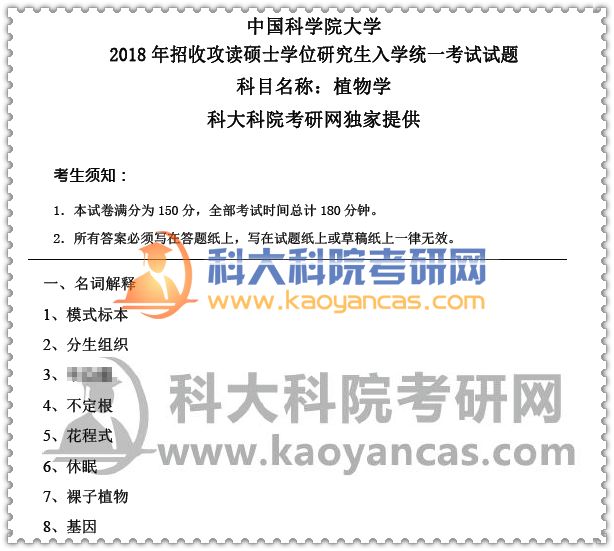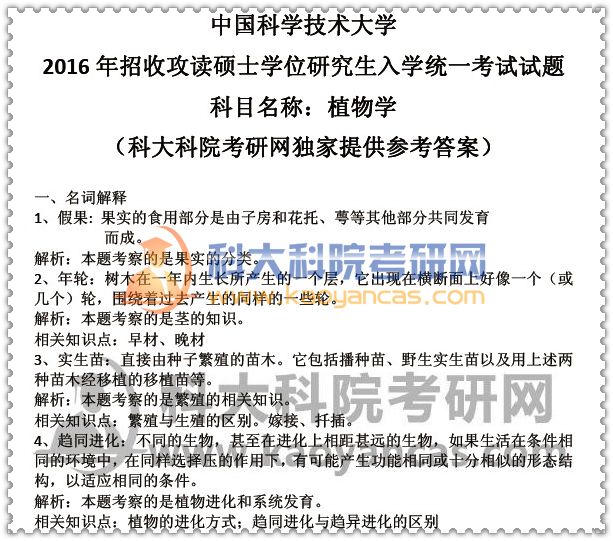 说明:2020版中科院《植物学》考研真题及答案解析内容,全部由科大科院考研网重新编辑整理,在保证资料内容的同时,全部WORD化编辑,给大家以新的视觉体验,当然,编辑内容较多且时间仓促,难免有个别错别字的问题,希望大家能够批评指正,携手科大科院考研网,在确保自己的高质量复习专业课同时,还可以造福我们的小师弟小师妹哦!