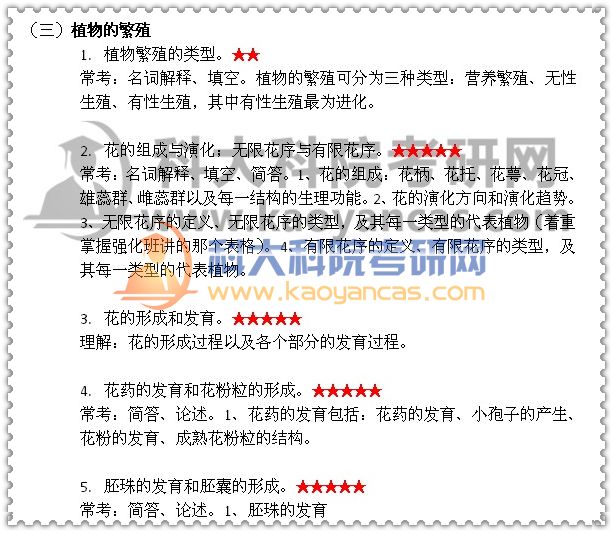 中科院成都生物所、植物所、华南植物园(初试第一名)三位高分学长的精华之作,对新大纲做了深度剖析,在分析历年真题的基础上将大纲中的知识点进行★—★★★★★五个等级划分,哪个是重点一览无余,复习方向不会出现偏颇。