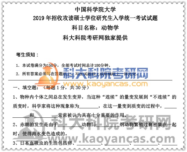 一、中科院《动物学》考研真题(独家更新2019年考研真题)