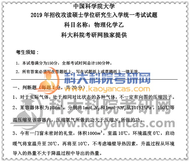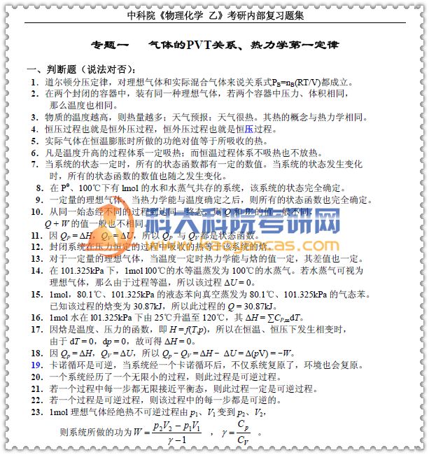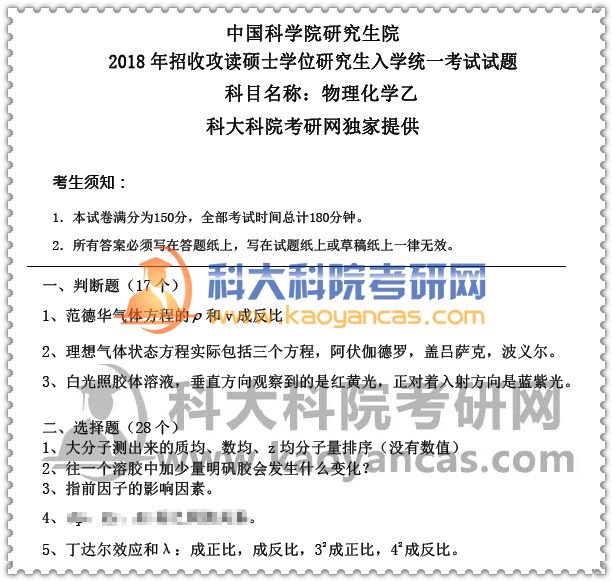 1、中科院《物理化学乙》历年考研真题(独家更新2019年试题)