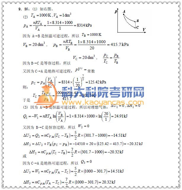 2009年物理化学乙真题(中科院统一命题,官方试题,含详细的答案)