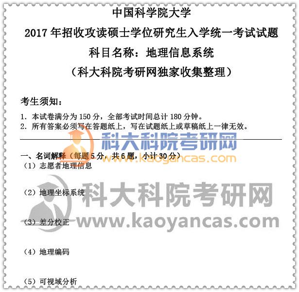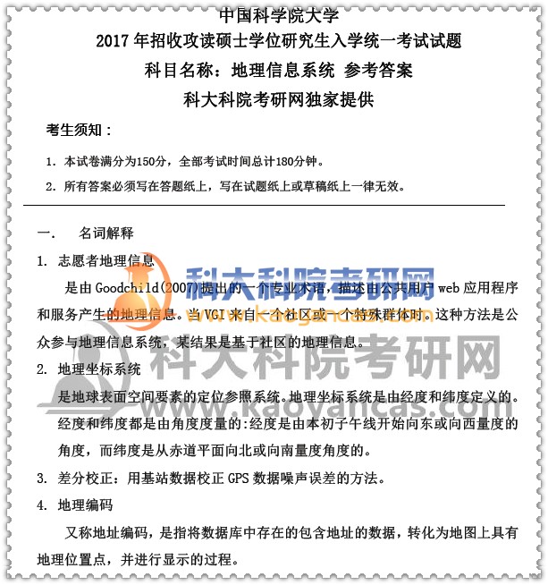 2017年中科院《地理信息系统》考研真题(含答案解析)