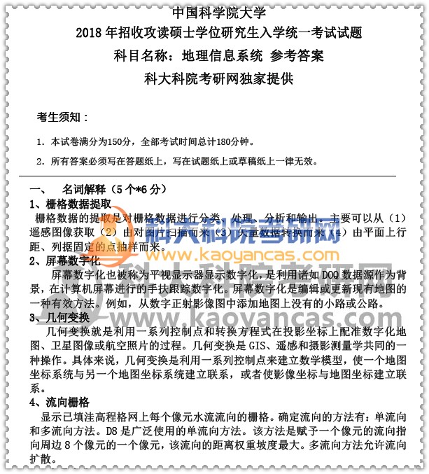2018年中科院《地理信息系统》考研真题(含答案解析)