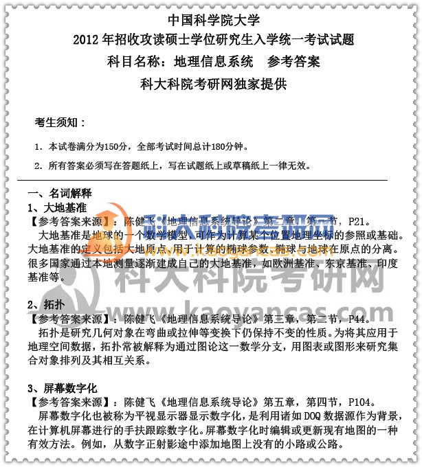2、中科院《839地理信息系统》复习方法及策略;
