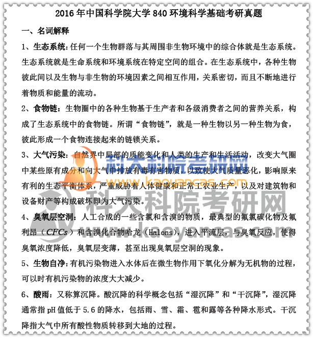 1、中科院 840环境科学基础 历年考研真题(已更新2019年考研真题+1998-2018年真题答案)
