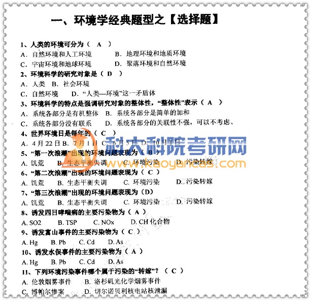 4、中科院 840环境科学基础 经典复习题集(有答案)