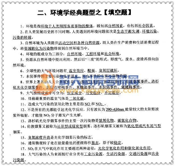 环境科学基础复习题集,涵盖了考纲的整个范围,在复习完教材、做完课后题后,用本复习题集进行扩展,一是检验复习效果,二是押题预测。