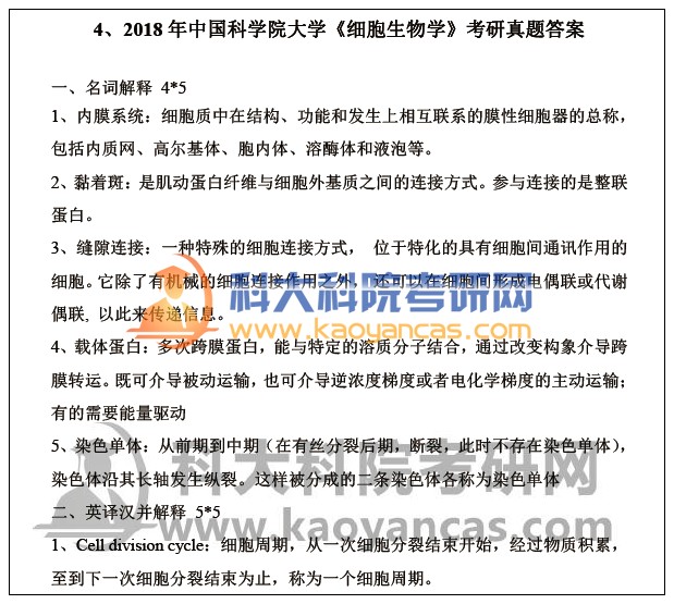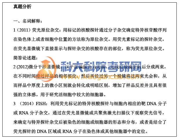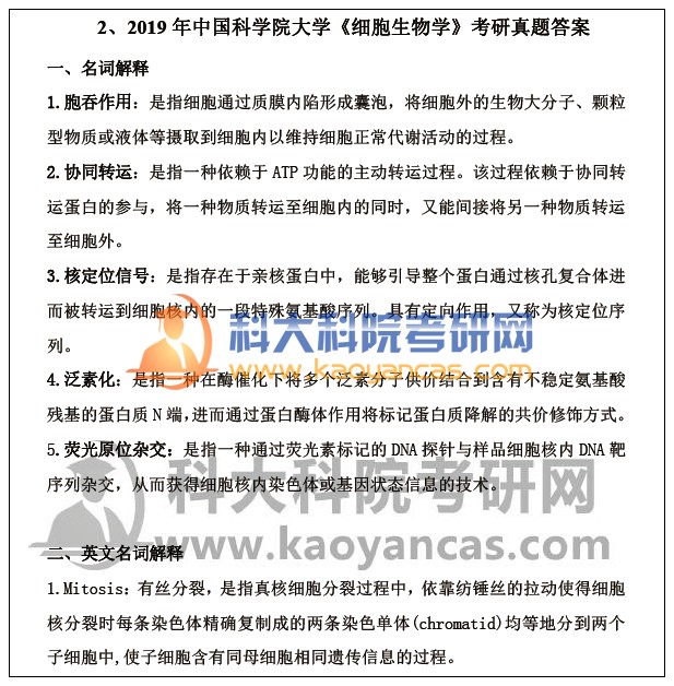 三、中科院《细胞生物学》历年考研真题及答案解析(独家更新2019年真题+答案!最新!)