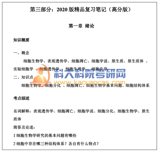 本店只提供对您最具参考价值的资料,面面俱到而又不失重点,网上随便下载的垃圾资料,既浪费您的复习时间,又会误导复习方向,本店就不再提供,也不建议您去看。大家都是要考中科院的同学,都是高智商的,请不要再问我有没有那些资料贩子赠送的垃圾资料!那些资料只会误导你的复习方向!那些资料均可以在“生物秀”论坛免费下到!