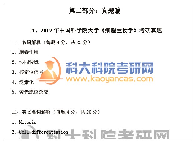 四、中科院《细胞生物学》考研真题解析班(共10个课时)