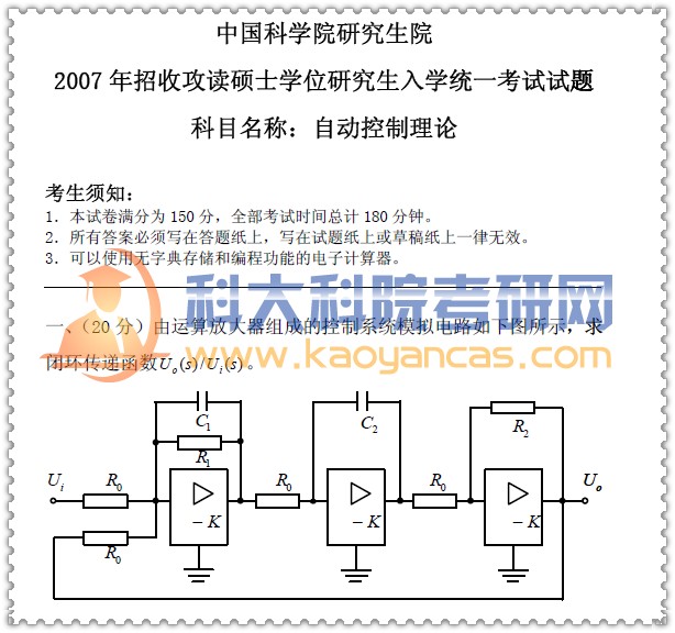 2007年中国科学院《自控控制理论》考研真题(含答案解析)