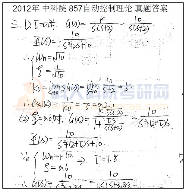 2014年中国科学院《自控控制理论》考研真题(含部分答案解析)