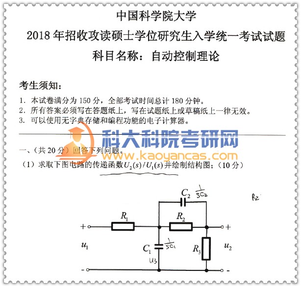 2018年中国科学院《自控控制理论》考研真题(原版)