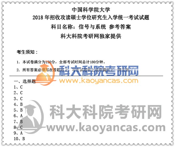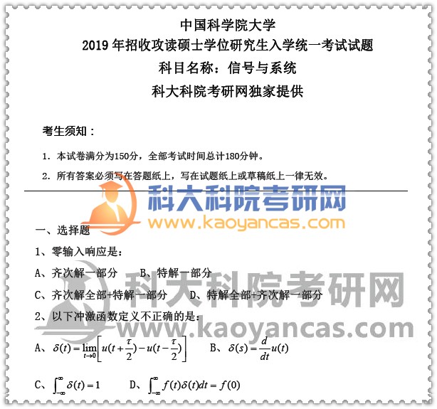 说明:2020版中科院《信号与系统》考研真题及答案解析内容,全部由科大科院考研网重新编辑整理,在保证资料内容的同时,全部WORD化编辑,给大家以新的视觉体验,当然,编辑内容较多且时间仓促,难免有个别错别字的问题,希望大家能够批评指正,携手科大科院考研网,在确保自己的高质量复习专业课同时,还可以造福我们的小师弟小师妹哦!