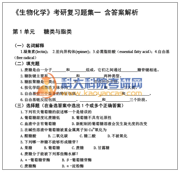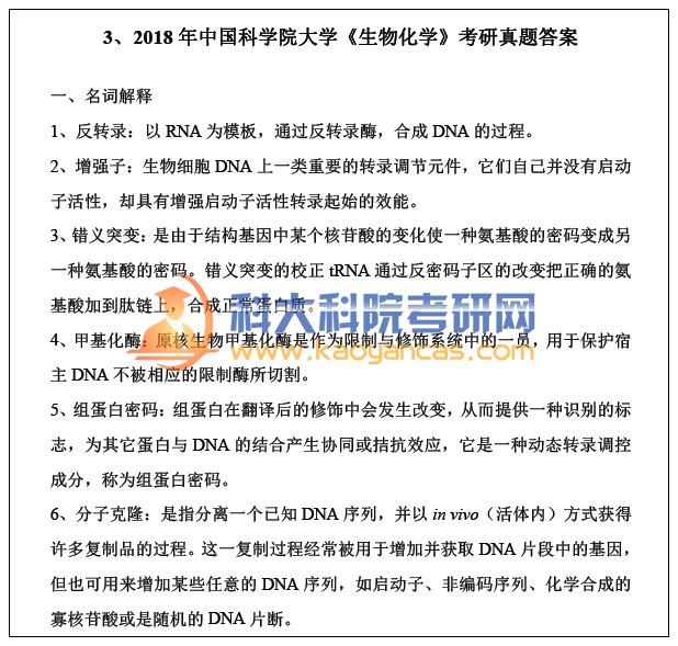 二、中科院《生物化学》历年考研真题【独家更新2019年考研真题】
