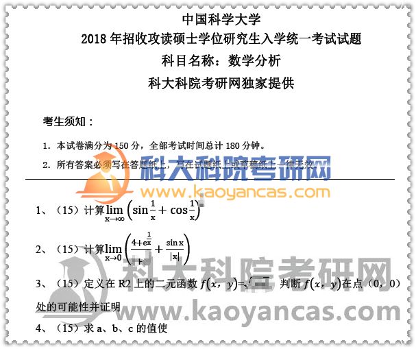 1、中科院《数学分析》历年考研真题及答案解析【独家更新2018年考研真题】