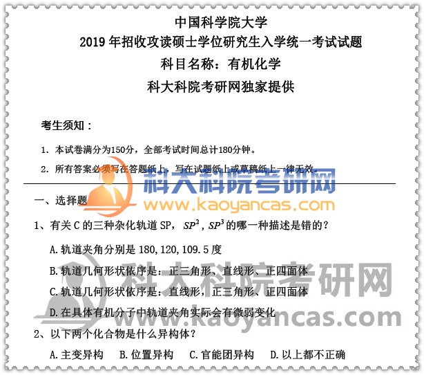 备注:00-06年为有机化学(中国科学院-中国科学技术大学命题),其他年份试题均为中科院研究生院统一命题。2015及2016年试题答案直接写在试卷上的。