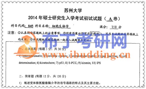 2020年苏州大学苏大845细胞生物学2004-2015+2018年考研真题高分笔