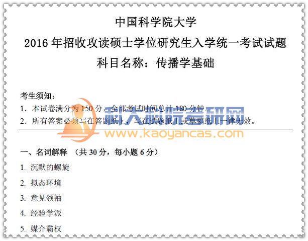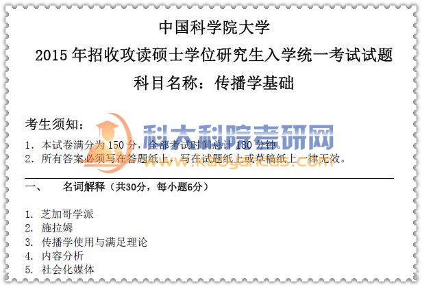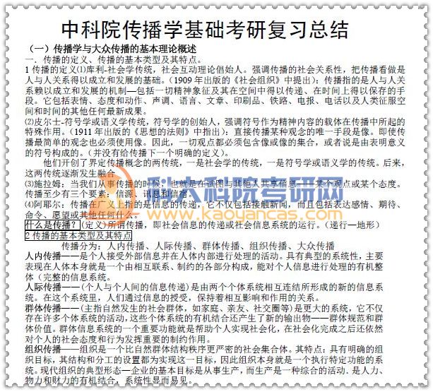 1、中国科学院 《传播学基础》历年考研真题(独家更新2017年考研真题)