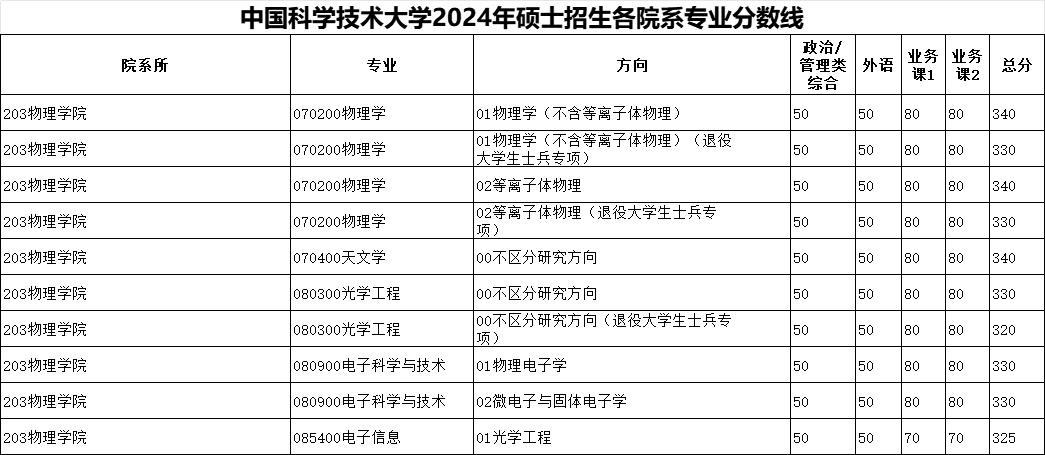 对于2025年将要考研的同学来讲,复试分数线是重要的参考数据。我们科大科院考研网专门为大家整理了近三年复试分数线供大家参考,为报考时多参考一些数据,对报考择校来讲是很值得做的一件事情。下面就是2022-2024年中国科学技术大学物理学院研究生招生分数线考研。