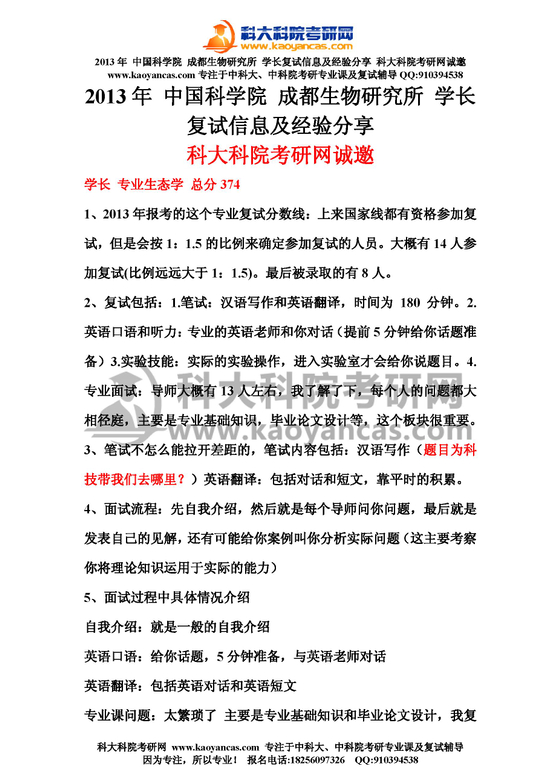中科院成都生物所学长复试信息及复试经验分享