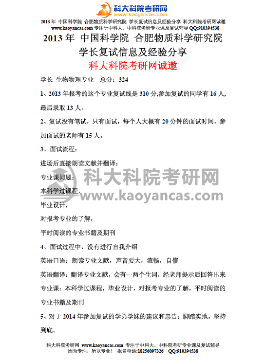 中科院合肥物质科学研究院考研复试信息复试经验分享